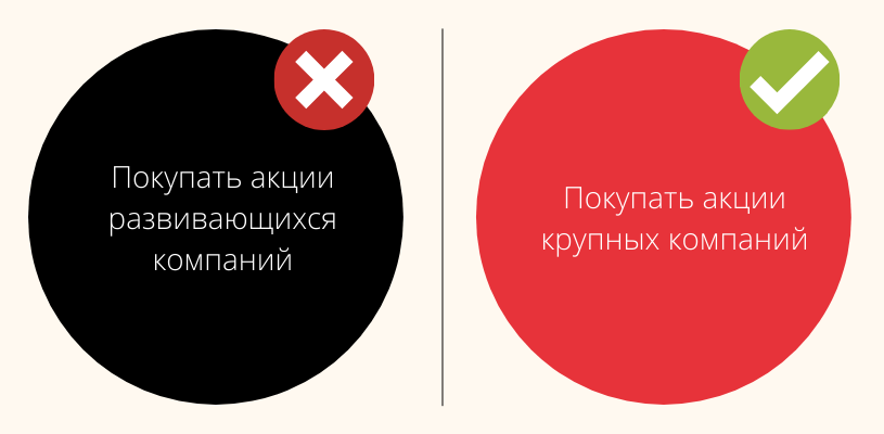 Покупайте «голубые фишки» – акции самых крупных и надёжных компаний рынка. По их состоянию определяют положение экономики. Это хороший вариант, который помогает как зарабатывать на акциях за счёт роста стоимости, так и получать дивиденды.