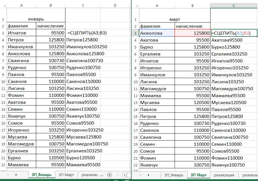 На самом деле всё не так сложно. Надо в отдельном столбце вначале соединить построчно позиции ключевых столбцов. Для этого либо используем знак амперсанда «&» или стандартную функцию сцепить.