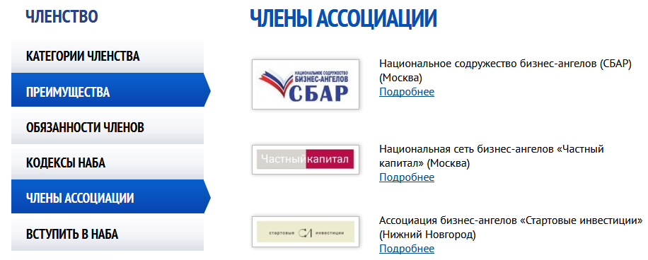 - НАБА – Национальная ассоциация бизнес-ангелов;