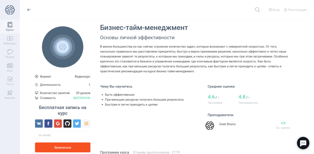 «Бизнес-тайм-менеджмент» от GeekBrains