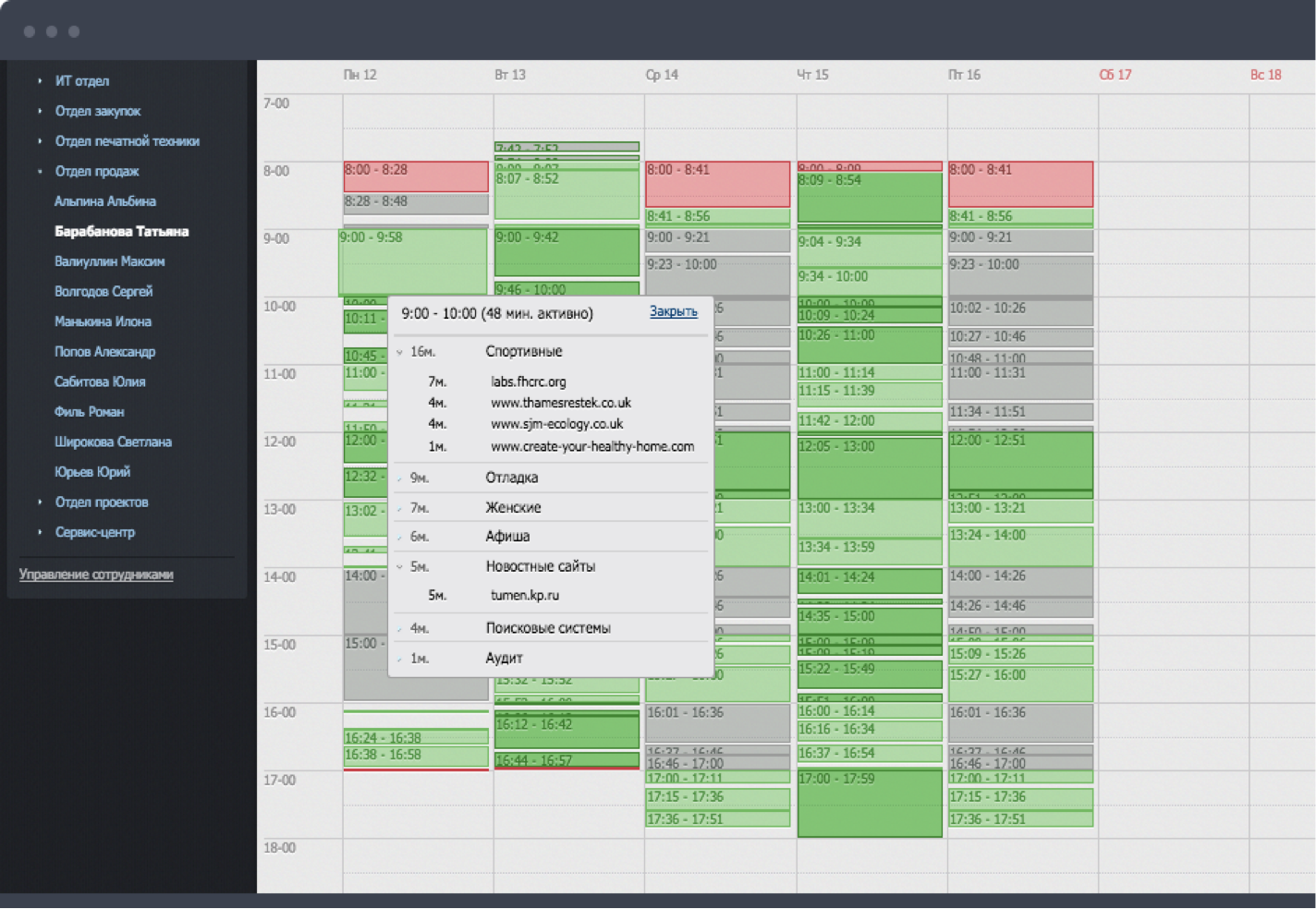 Впоследствии создаются отчеты, позволяющие понять структуру рабочего дня каждого конкретного сотрудника – на какие задачи у них уходит больше всего времени, в какие периоды они работают больше или меньше. Эти данные помогают руководству оптимизировать рабочие процессы так, чтобы не перегружать работников, но и не позволять им чрезмерно расслабляться.