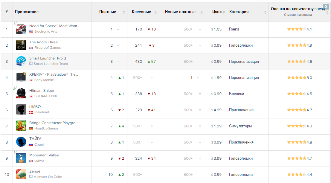 Больше узнать о предпочтениях российских пользователей помогут топ-чарты мобильных приложений. Посмотрим отчет App Annie о рейтинге платных приложений в App Store и Google Play.