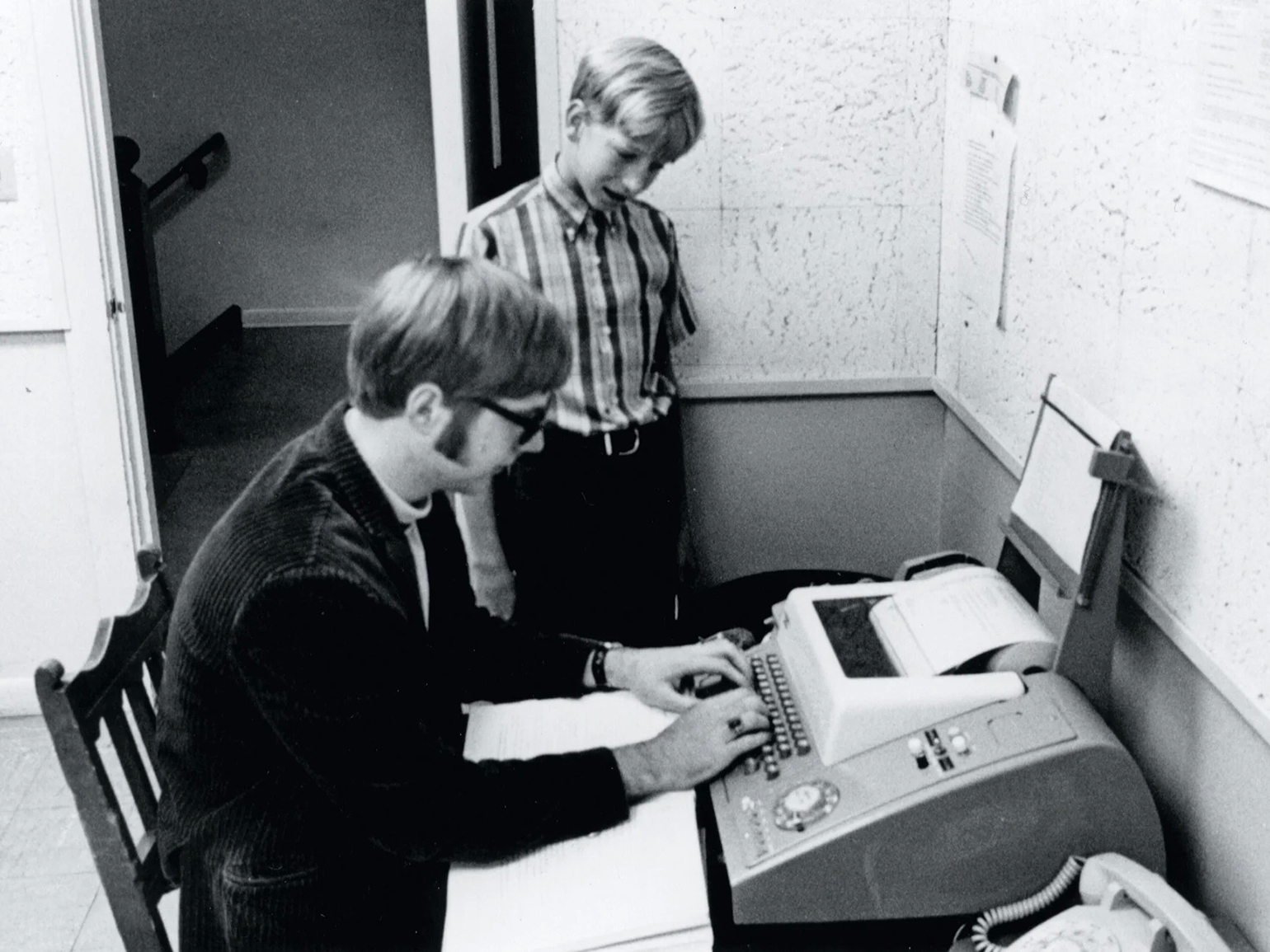 Билл Гейтс наблюдает, как его друг и будущий соучредитель Microsoft Пол Аллен работает над телетайпом. 1968 годФото: Lakeside School / Microsoft