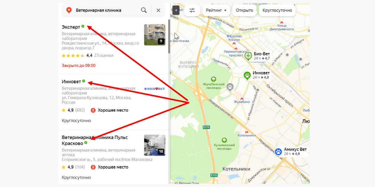 Если вы даете рекламу в поисковой выдаче геосервиса, компания получает зеленую метку и показывается на первых позициях выдачи