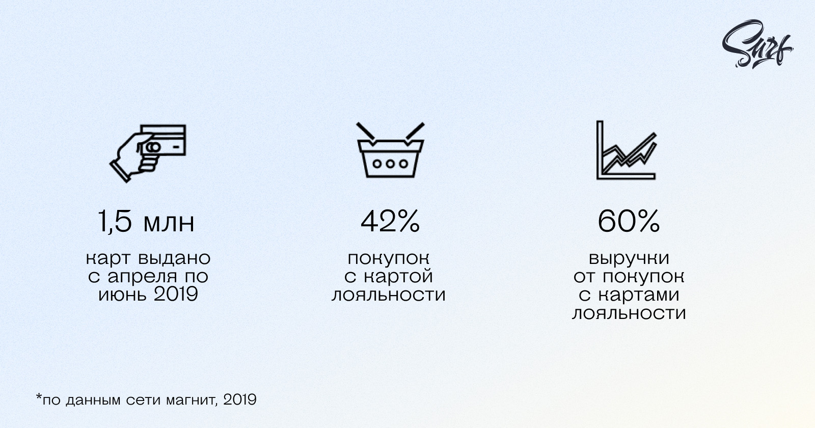 Система лояльности, интегрированная с мобильным приложением, может увеличить частоту его посещений в несколько раз. Так произошло в 2019 году в нашем проекте с «Магнитом». После интеграции системы лояльности клиенты стали использовать приложение в 3 раза чаще.