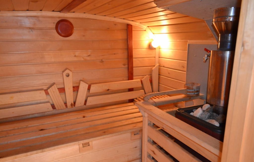 Несмотря на то, что обычно она имеет компактные размеры, такая баня имеет все необходимое для проведения парильных процедур. Печь в бане может быть трех видов: на дровах, газовой и электрической.