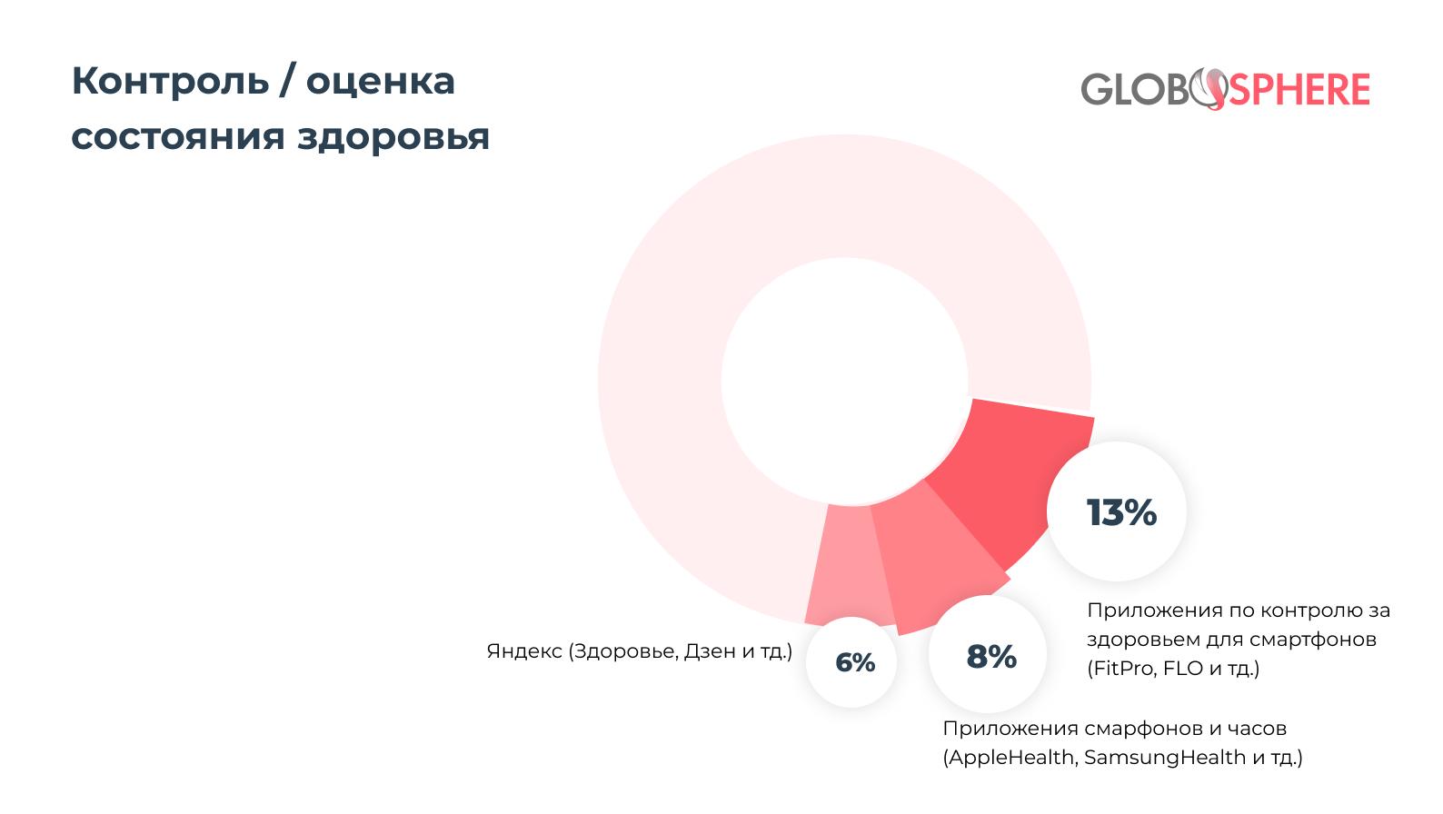 Для контроля и оценки состояния здоровья популярнее всего приложения FitPro, Flo, а также приложения для фитнес-трекеров и умных часов (Apple Health, Samsung Health).