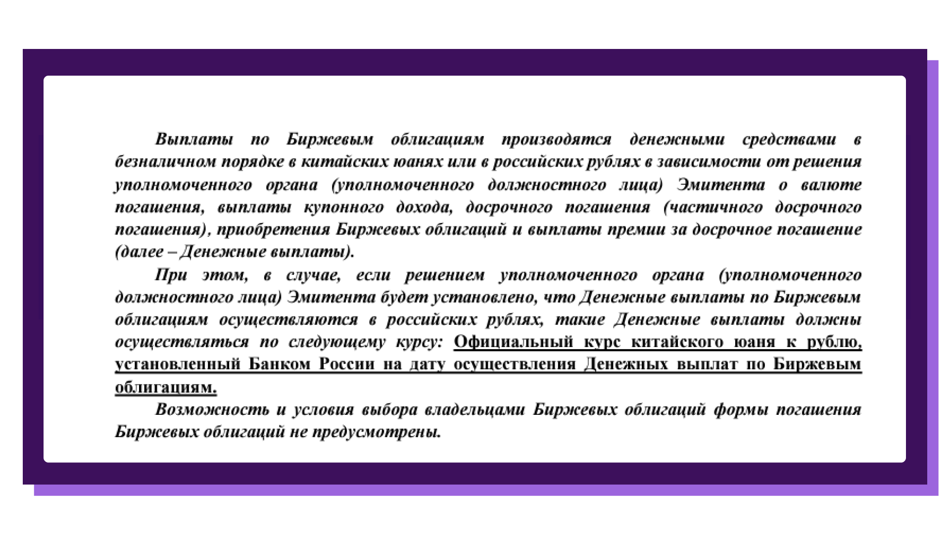 Рис. 6. Информация по валюте выплат бондов РУСАЛа в юанях, источник finam.ru