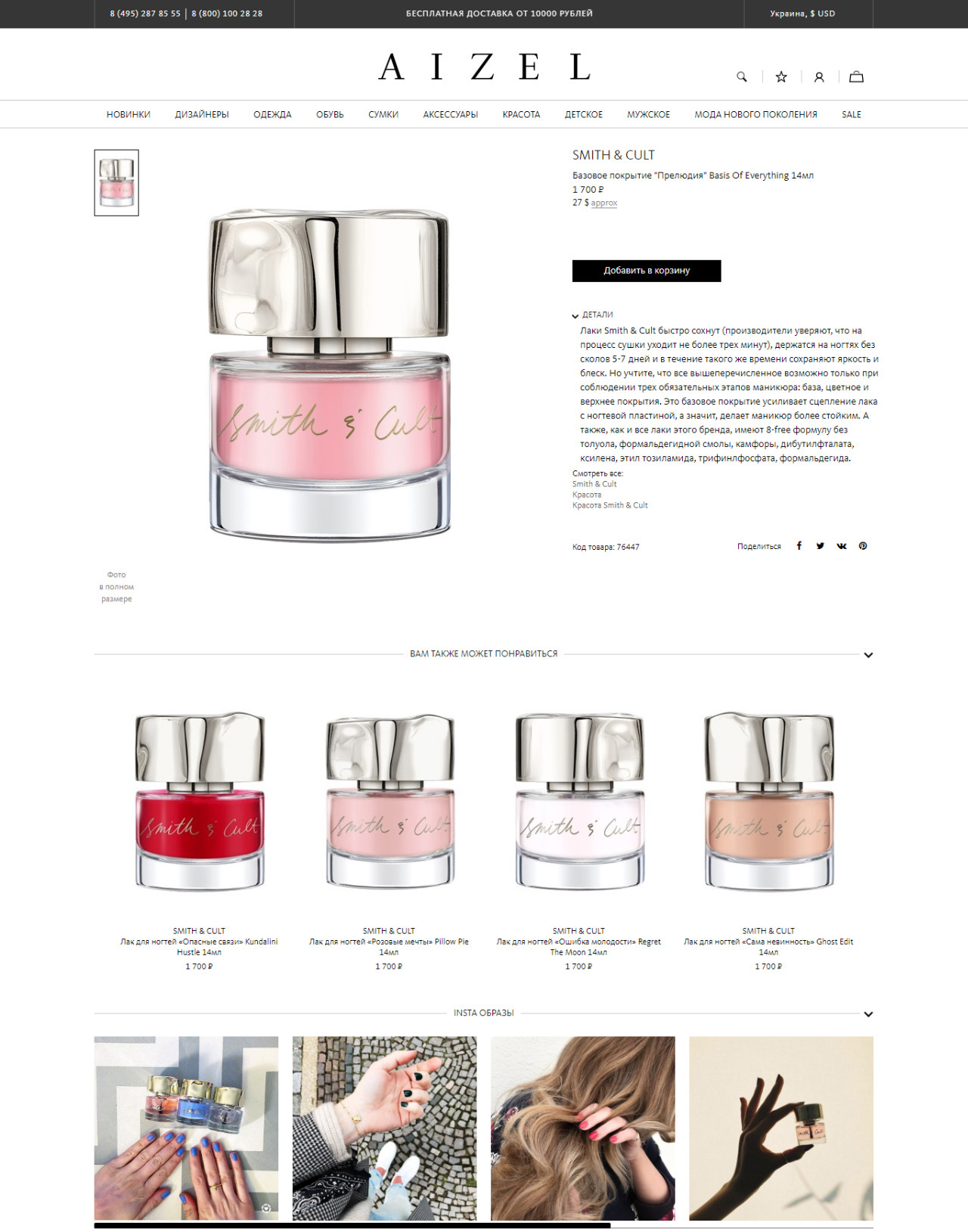 Например, карточка товара со студийной фотографией, дополненная галереей из Instagram.