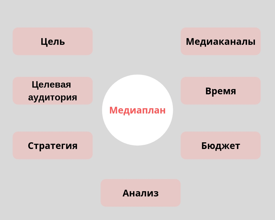 Цель медиаплана — достичь максимальных результатов, уложившись в минимальный бюджет. Показатели эффективности — охват и стоимость размещения одного рекламного сообщения