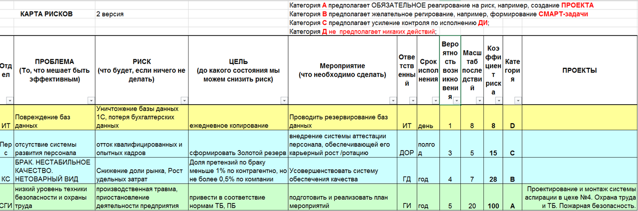 Пример таблицы для контроля бизнес-рисков