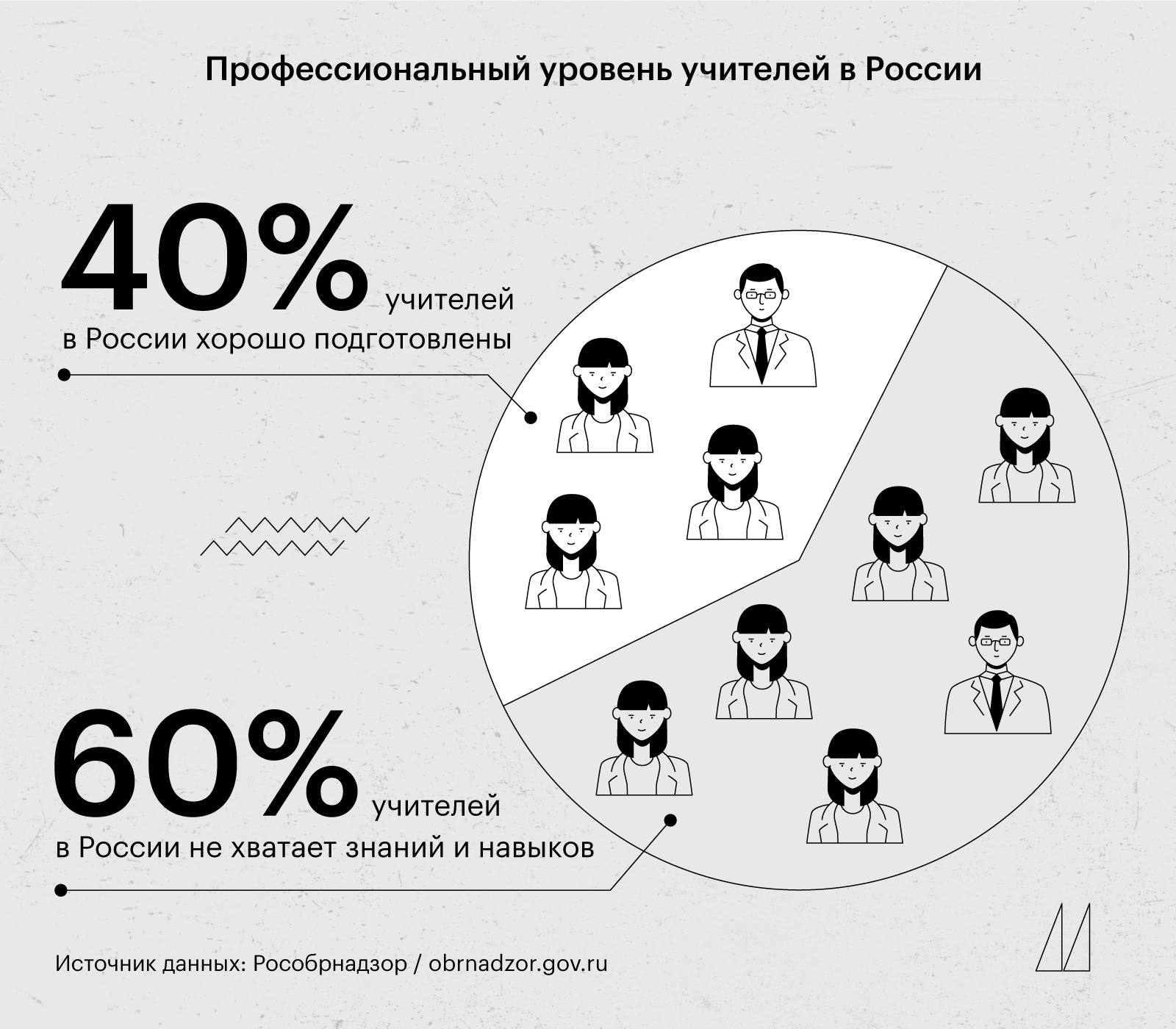 Глава Рособрнадзора Анзор Музаев в июне озвучил данные анализа оценки компетенций школьных учителей (исследование велось в течение трёх лет). Оказалось, что достаточно хорошо подготовлена меньшая часть педагогов, а большинство — «чуть-чуть не дотягивает», им не хватает предметной и методической подготовки