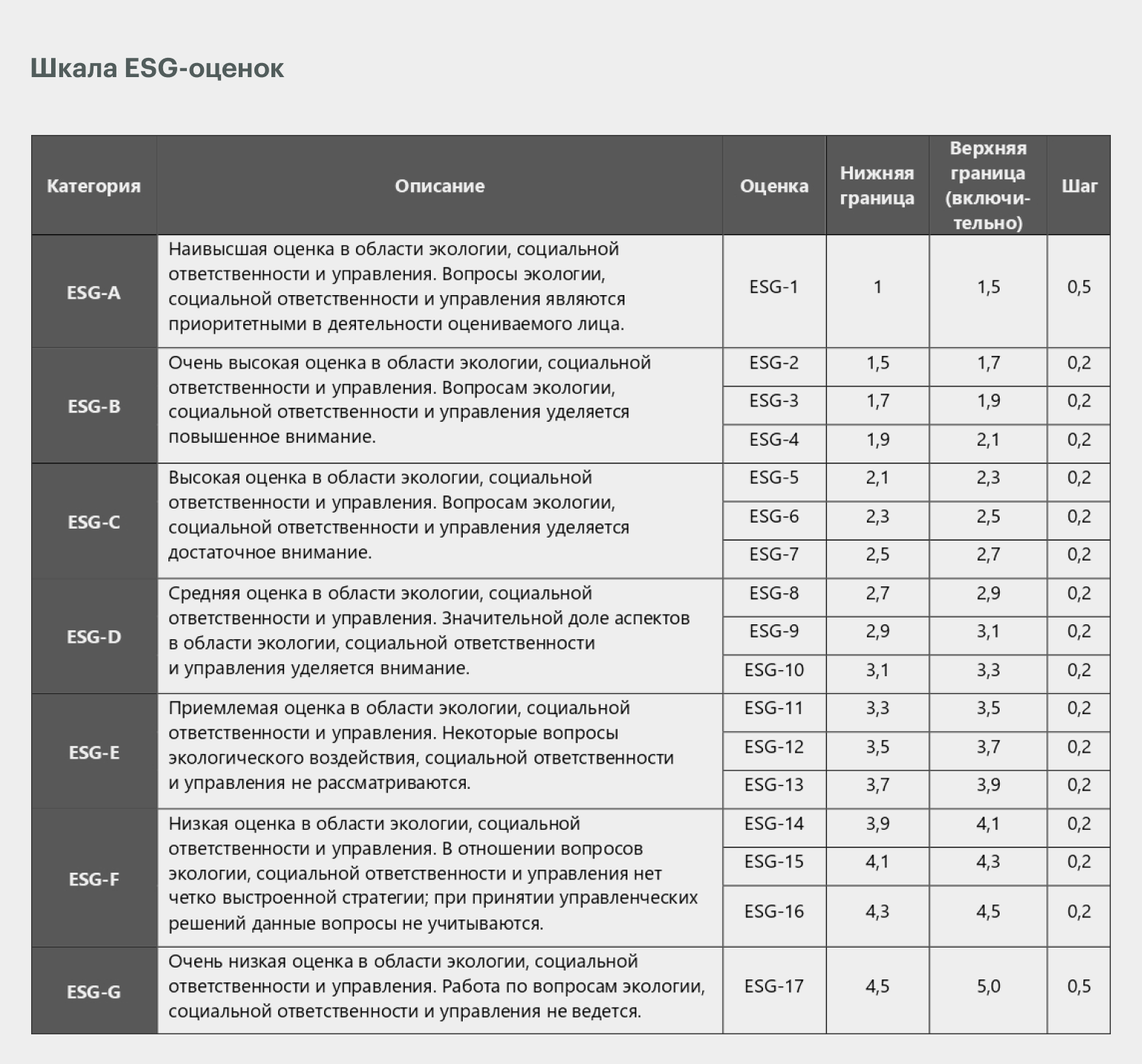 Такой рейтинг понадобится, если компания планирует привлечь финансирование для «зелёных» или социальных проектов. Иными словами, ESG-рейтинг высокого уровня — доказательство успеха в сфере ESG. Он отражает одновременно подверженность компании ESG-рискам и желание и способность менеджмента работать с ними, управлять своим влиянием на окружающую среду и общество.