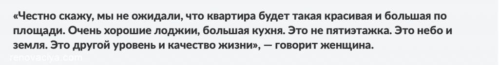88-летняя Нина Дидковская в новостройку переехала только около четырех месяцев назад и почти сразу освоилась. В новой квартире не пришлось ничего менять: на полу уложена керамическая плитка и ламинат, даже люстры висят. В новом доме Нину Михайловну удивляют просторные балконы, с которых открывается вид на детскую площадку. «Отсюда я даже вижу подъезд своего прошлого дома. Иногда смотрю и думаю: “Ай, надоел ты мне”. Еще у меня есть бинокль, правда, театральный. Я смотрю в него и вижу, кто переезжает, кто съезжает», — делится впечатлениями женщина.