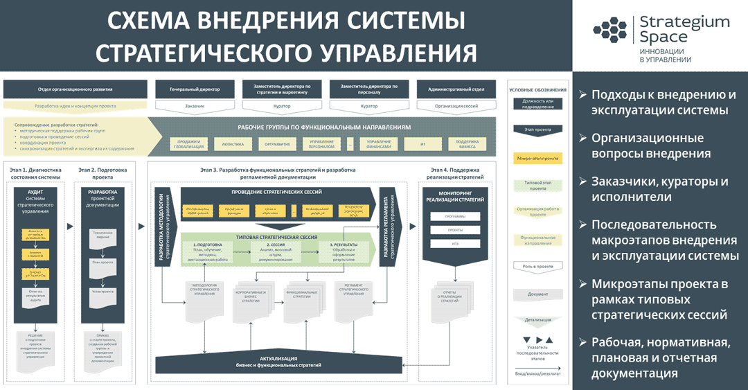 Данная схема внедрения отражает пример одной крупной регионально распределенной компании, которая успешно внедрила процессно-ориентированный подход к стратегическому управлению.
