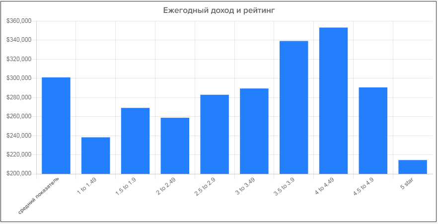 - пять звезд легко получить компаниям с небольшим количеством отзывов, а это может быть обусловлено тем, что компания недавно на рынке, она маленькая, неизвестная, поэтому ее доход меньше;