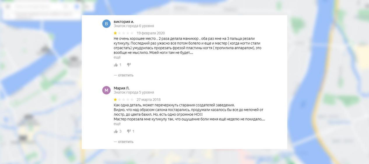 Еще одна распространенная ошибка. Если вы получили негативный отзыв – не оставляйте его без внимания. Рассерженный клиент, проблему которого игнорирует руководство, точно к вам не вернется. На примере этих комментариев клиенты пострадали от руки мастера во время получения услуги, и это точно повод внимательно изучить проблему!