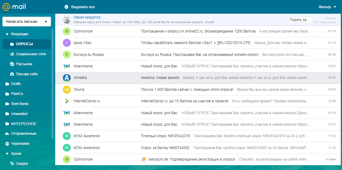 По информации от администрации Анкетолога, количество опросов очень сильно зависит от региона вашего проживания — больше всего опросов приходит жителям крупных городов, которые активно пользуются различными товарами и услугами. Но это не значит, что для других категорий граждан совсем не будет опросов.