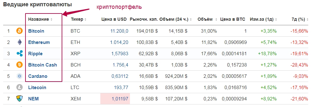 Для того чтобы начать зарабатывать на Криптовалюте, необходимо создать свой криптопортфель из числа перспективных криптовалют. Конечно желательно изучить потенциального претендента в инвестпортфель, почитать новости, послушать умных людей. Но можно этот процесс упростить. Рынок уже сделал свой выбор и расставил приоритеты.