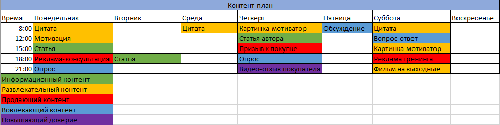 - Записать план публикаций на неделю, а лучше на месяц, в екселе