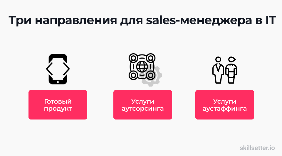 В IT-сфере менеджеры по продажам чаще всего работают с сегментом B2B по трем основным направлениям: