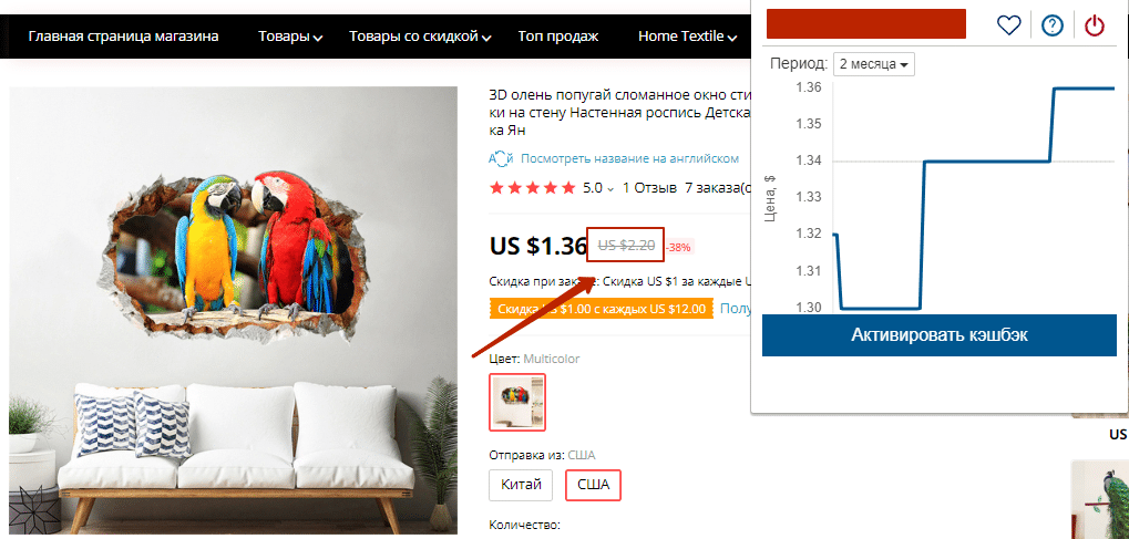 Наличие дополнения упрощает получение денежного возврата. С расширением сразу идем на Алиэкспресс, где предлагают активировать кэшбэк: