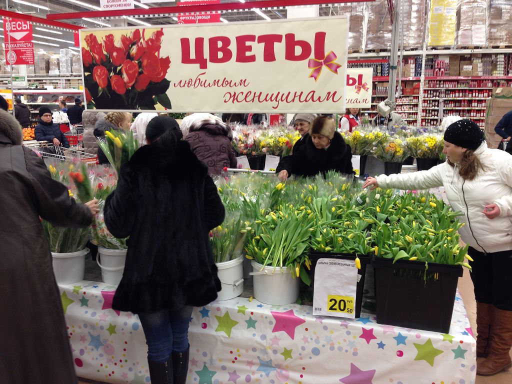 Нужно взять разрешение на торговлю в администрации, на такие праздники разрешение на торговлю (на три дня) дают бесплатно. Как правило, к 8 марта в администрации уже заранее намечены такие места продаж для цветов. Вам нужно выбрать самое хорошее, проходное место. Но делать это нужно за месяц, а то и за два, иначе все самые хорошие места разберут.