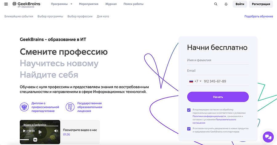 GeekBrains — образовательный портал, которому важно добиться результата и понимания, а не просто дать теорию ученику. Особенность GeekBrains — обилие партнеров, среди которых технологические и маркетинговые гиганты России