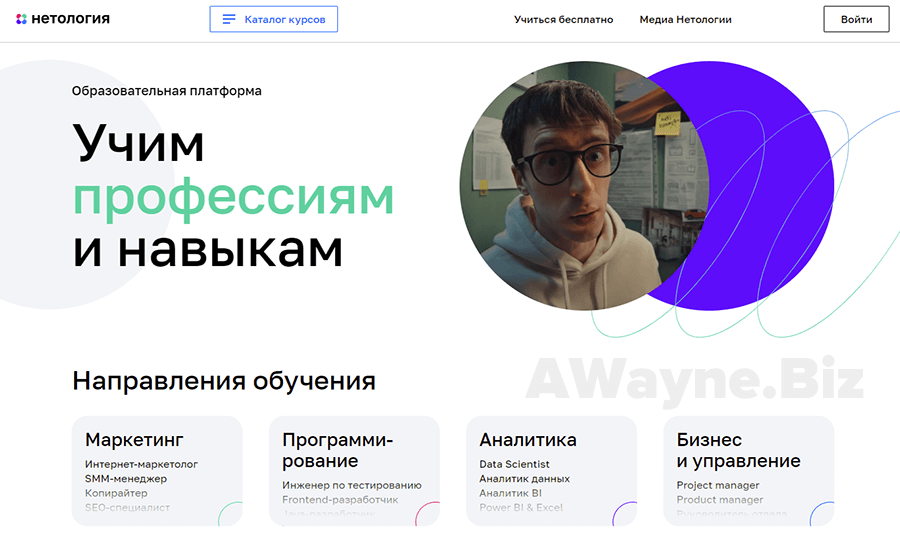 - Направления: программирование, маркетинг, аналитика, менеджмент, дизайн, создание видео.