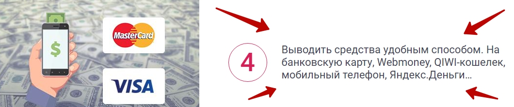 Чтобы вывести средства, нужно накопить минимум 500 рублей. Деньги выводятся на карты (Visa, Maestro, Мир), PayPal, Вебмани, а также на телефон.