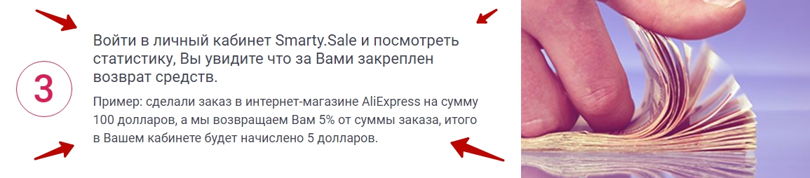 Никакого секрета и подвоха нет. Smarty Sale – вовсе не благотворительная организация. С каждой операции создатели сайта получают гарантированный доход – плату от магазинов за привлеченных покупателей.