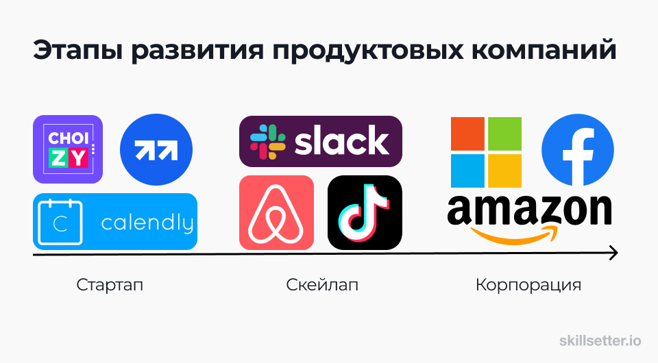 У продуктовой компании три этапа развития: стартап, скейлап и корпорация. На всех этапах вы можете стать частью команды. Рассмотрим их подробнее.