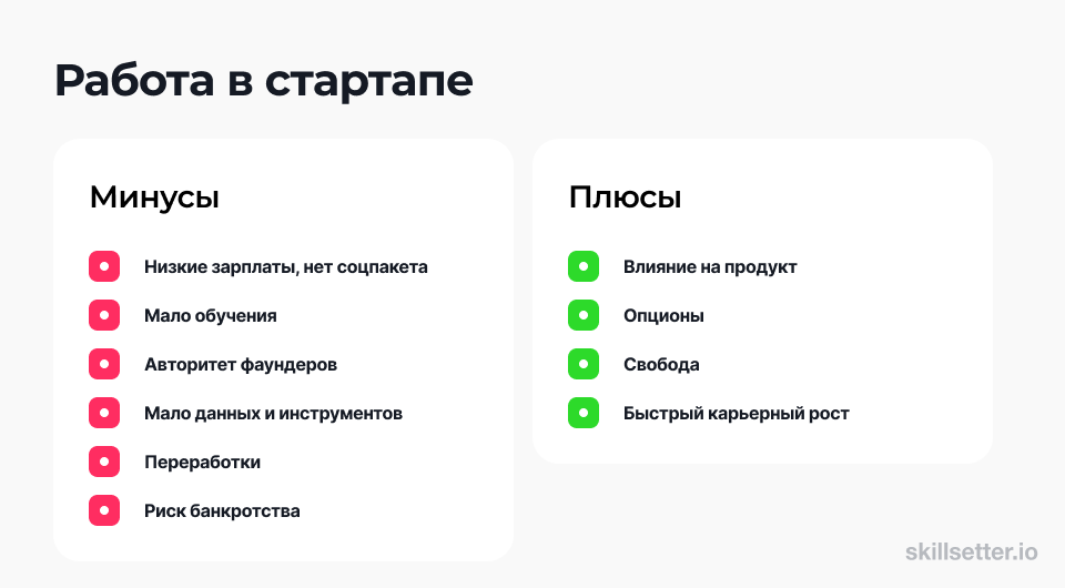 4. Авторитет фаундеров. В стартапах еще нет выстроенных процессов принятия решений, поэтому в компании могут постоянно меняться приоритеты.