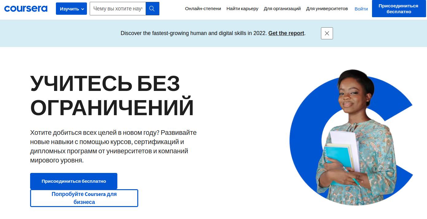 С ее помощью можно дистанционно пройти курсы, овладеть новыми навыками или освоить новую профессию, получить высшее образование — степень бакалавра или магистра. Список специализаций обширный — программирование, экономика, маркетинг, бизнес, дизайн и многое другое.