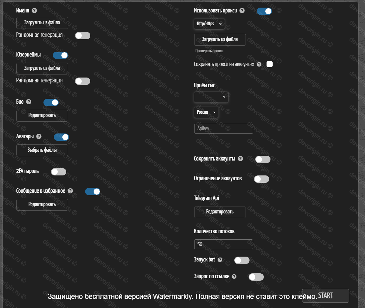 В шаблонах можно менять как латинские и кириллические символы, так и слова. Например, хочу {посоветовать вам|познакомить вас|рассказать вам|представить вашему вниманию} {отличный|замечательный|лучший} сервис. Дополнительно бот поддерживает подстановку имен и юзернеймов, как отправляющих аккаунтов, так и принимающих. Такой вариант повышает уникальность вашего текста еще больше.