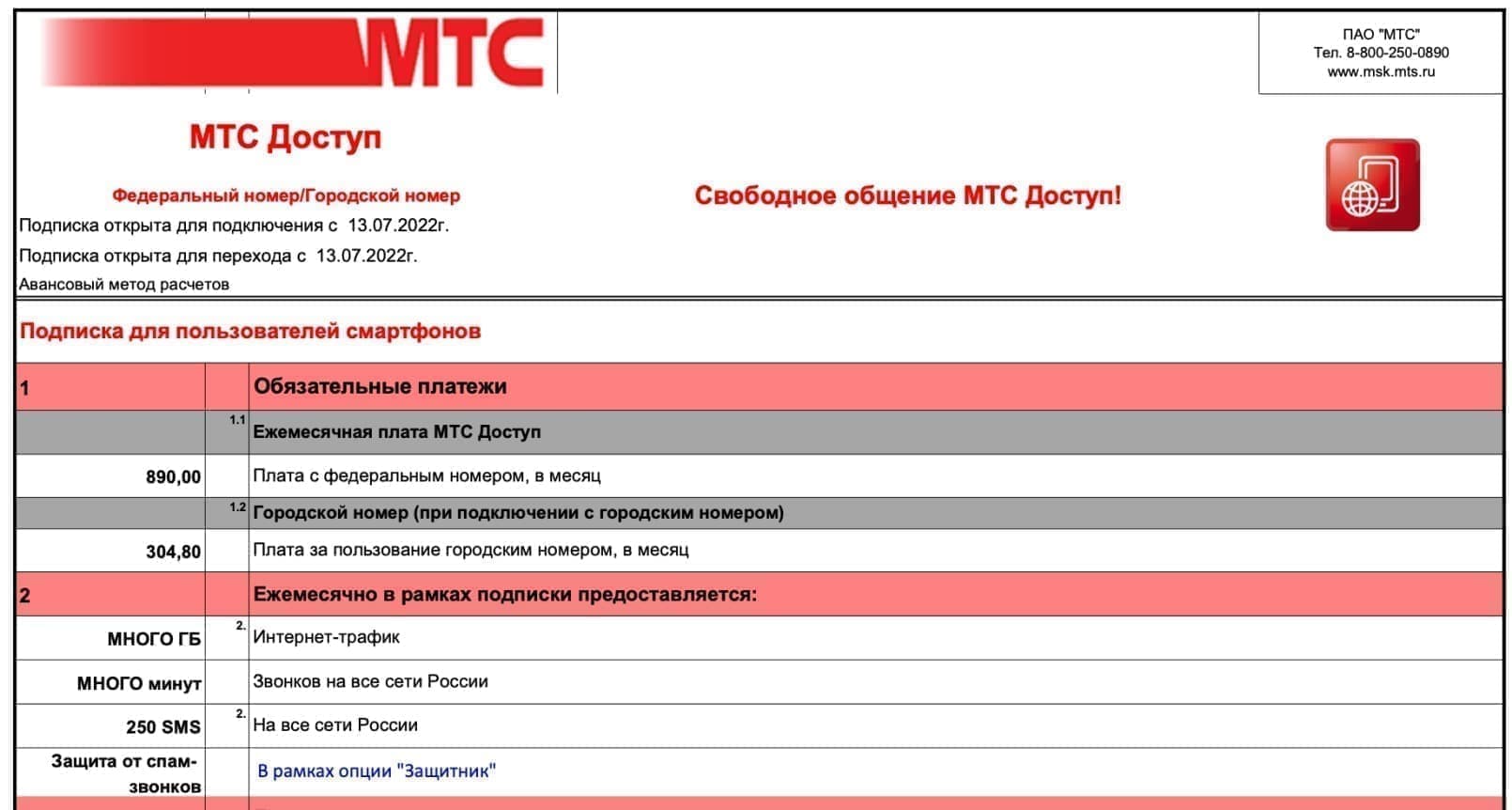 - Отключить «Доступ» можно переходом на любой другой актуальный тариф МТС;