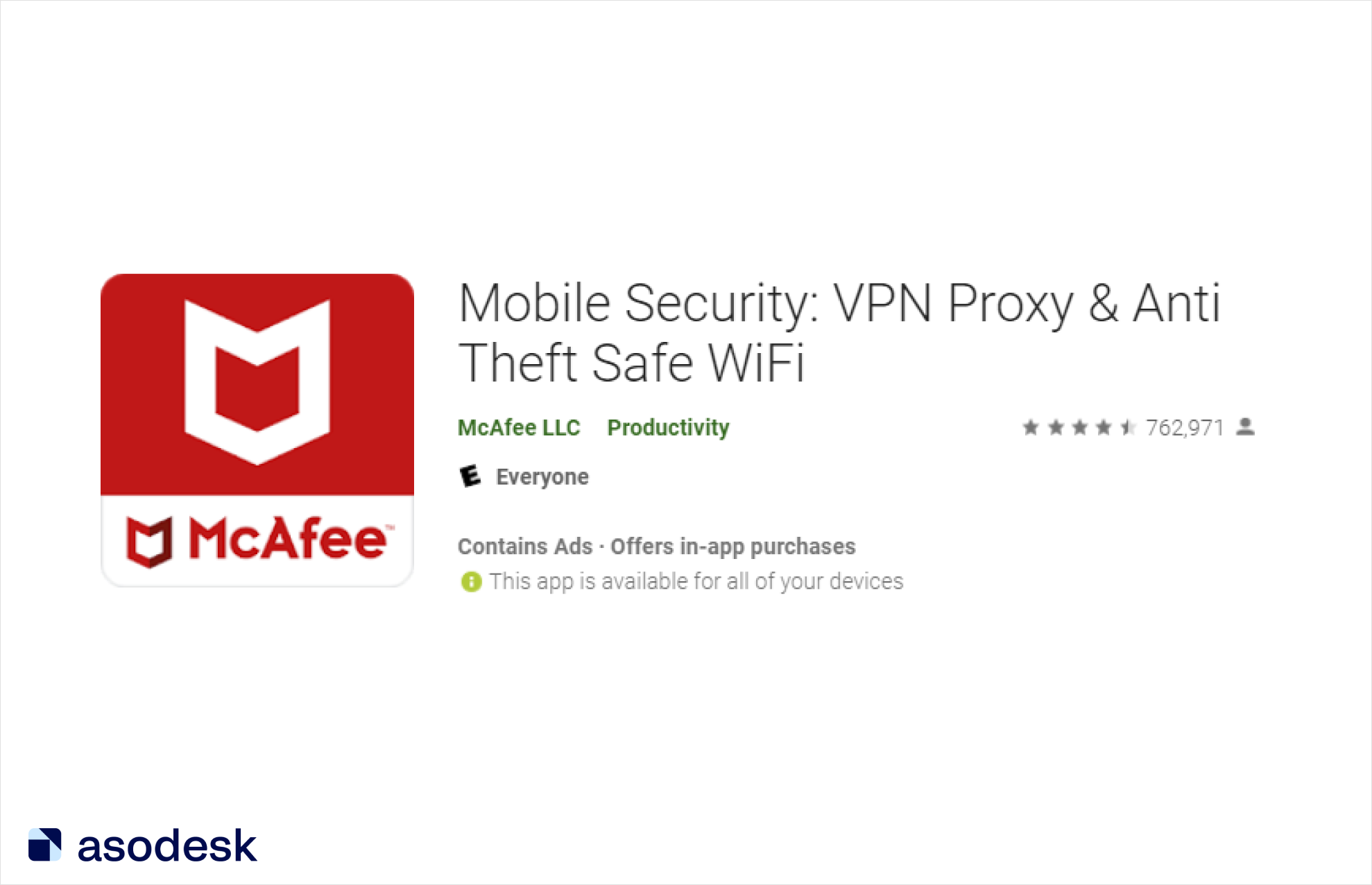 Например, название бренда McAfee поместили на иконку, а в Title приложения указали ключевые слова: VPN, Safe WiFi.