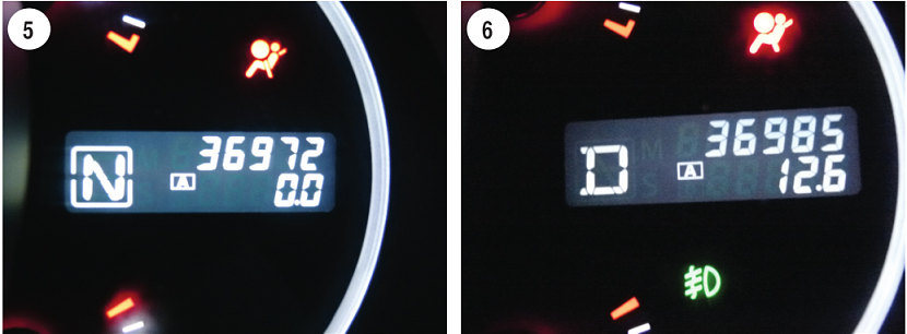 Показание одометра автомобиля (пробег автомобиля с начала эксплуатации) на момент представления на исследование 36 972 км (фото 5). Показание одометра автомобиля после окончания дорожных испытаний 36 985 км (фото 6).
