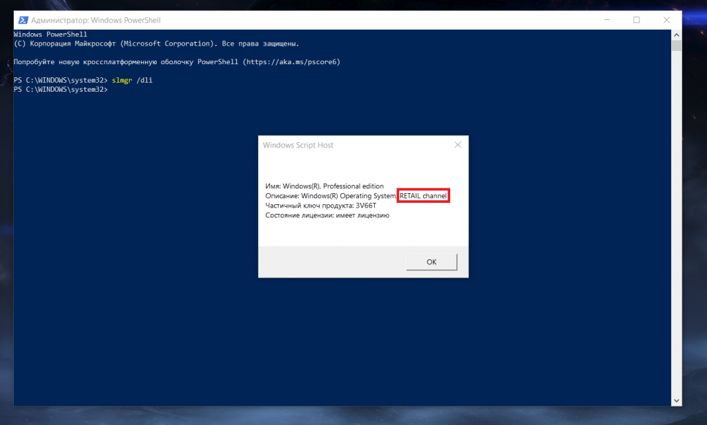 Важное предупреждение: начиная со сборки 1703 утилита SLMGR может показывать ключ вашей версии Windows по умолчанию, и он, очевидно, не совпадет с реальным. Но тип лицензии она указывает верный.