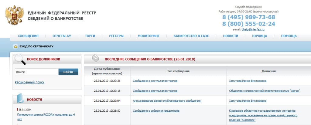 Самые актуальные сведения о компаниях – банкротах и ведении дел по присвоению статуса «банкротства» конкретной организации можно отслеживать на официальном сайте Единого Федерального Реестра Сведений о банкротстве: