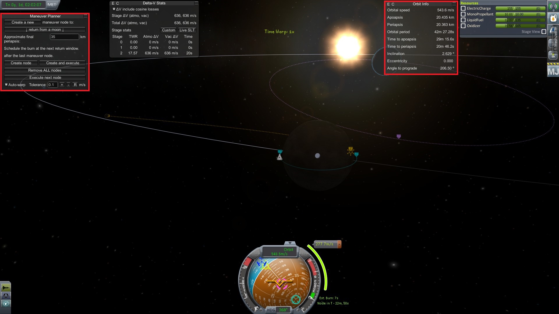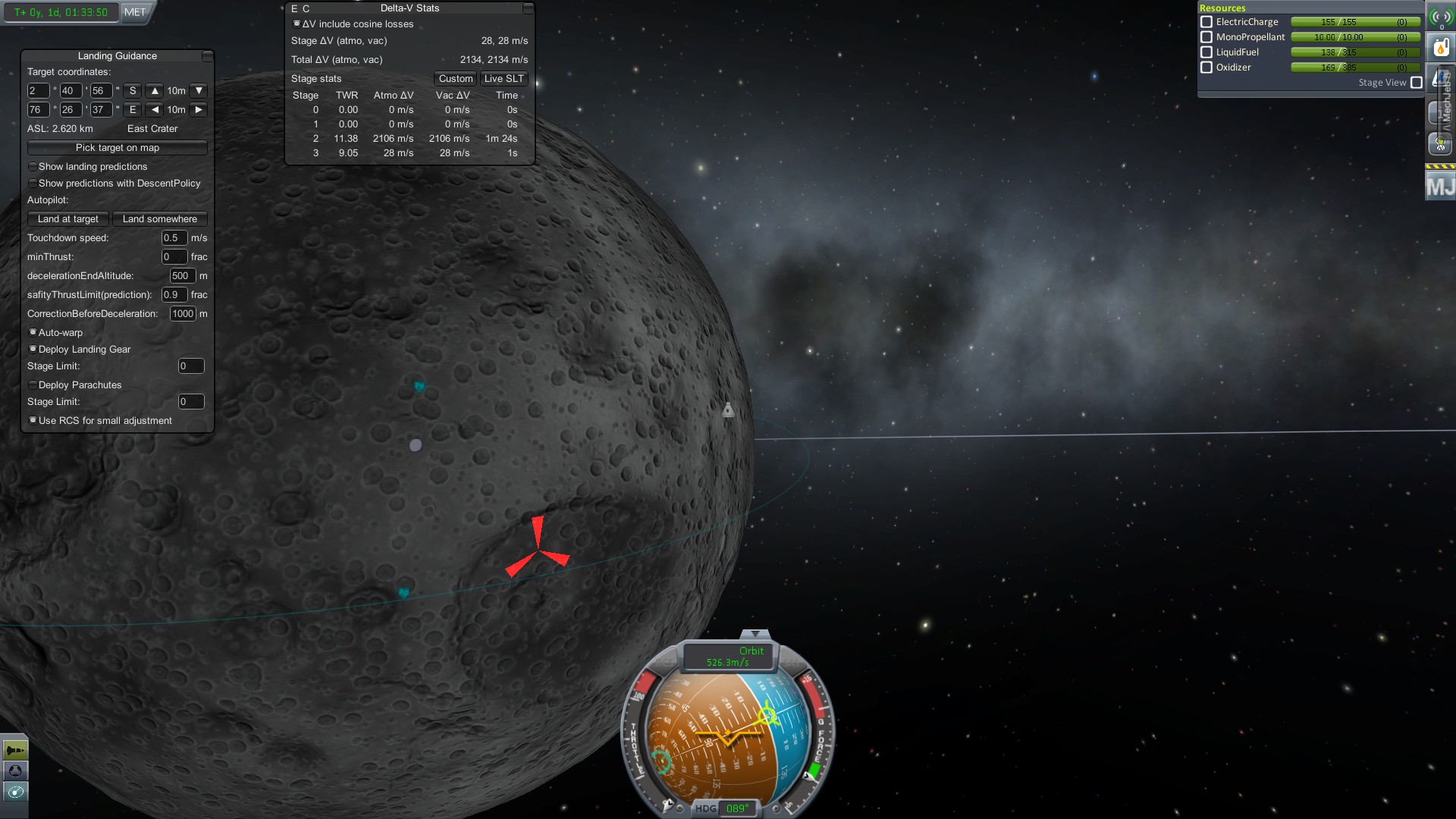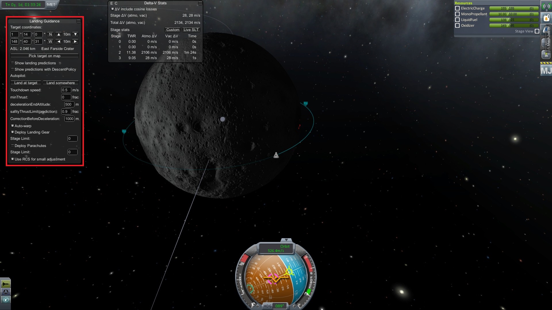 Теперь мы болтаемся на орбите Муны. Следующим шагом станет посадка на нее.