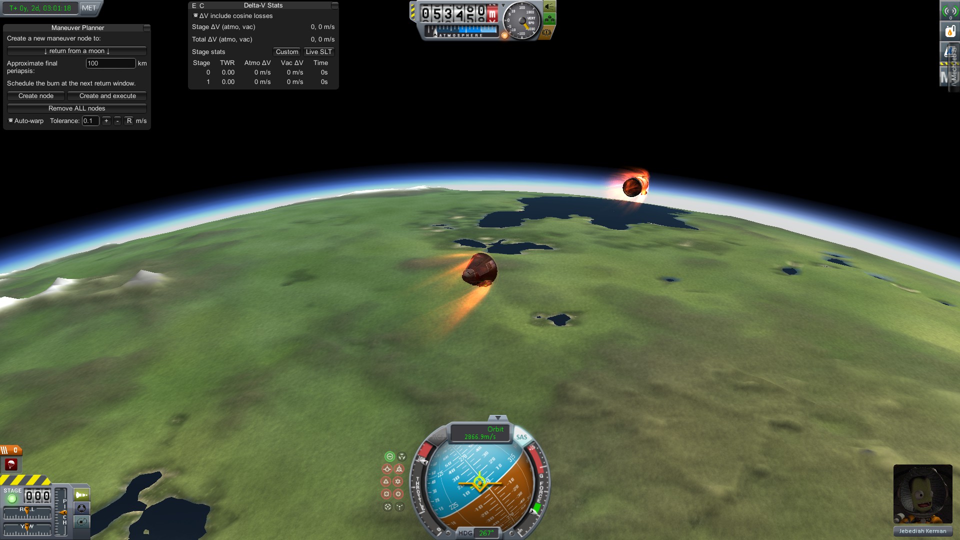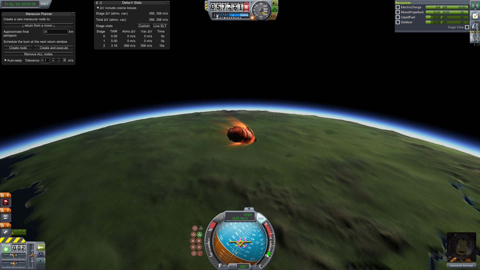 Как видите у меня осталось 358 м/с ΔV на момент входа в атмосферу. Можно считать что я взял лишний топливный бак. Использую его для дополнительного торможения в атмосфере.