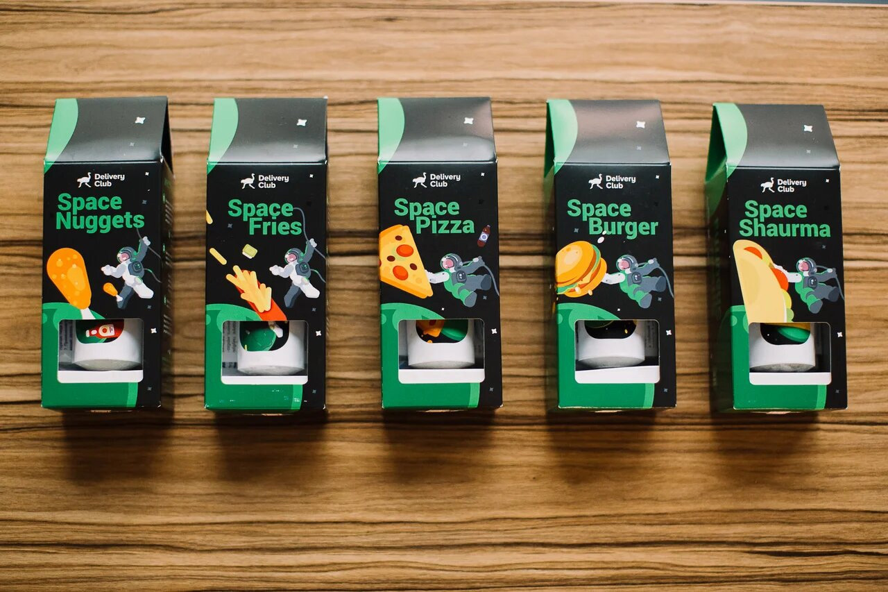 Подробные идеи по визуализации можно посмотреть здесь. Также можно вдохновиться примерами креативов ко Дню космонавтики в прошлому году, например, классной упаковкой «космической еды» от Delivery Club или насыщенной графикой бренда Askona.