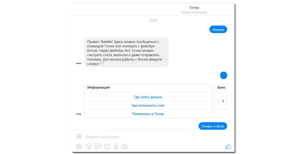Например, вы за границей и хотите узнать о состоянии своих счетов, не выходя из любимой социальной сети. Раз-два-три, и вы уже общаетесь с чат-ботом. И не надо никуда звонить.