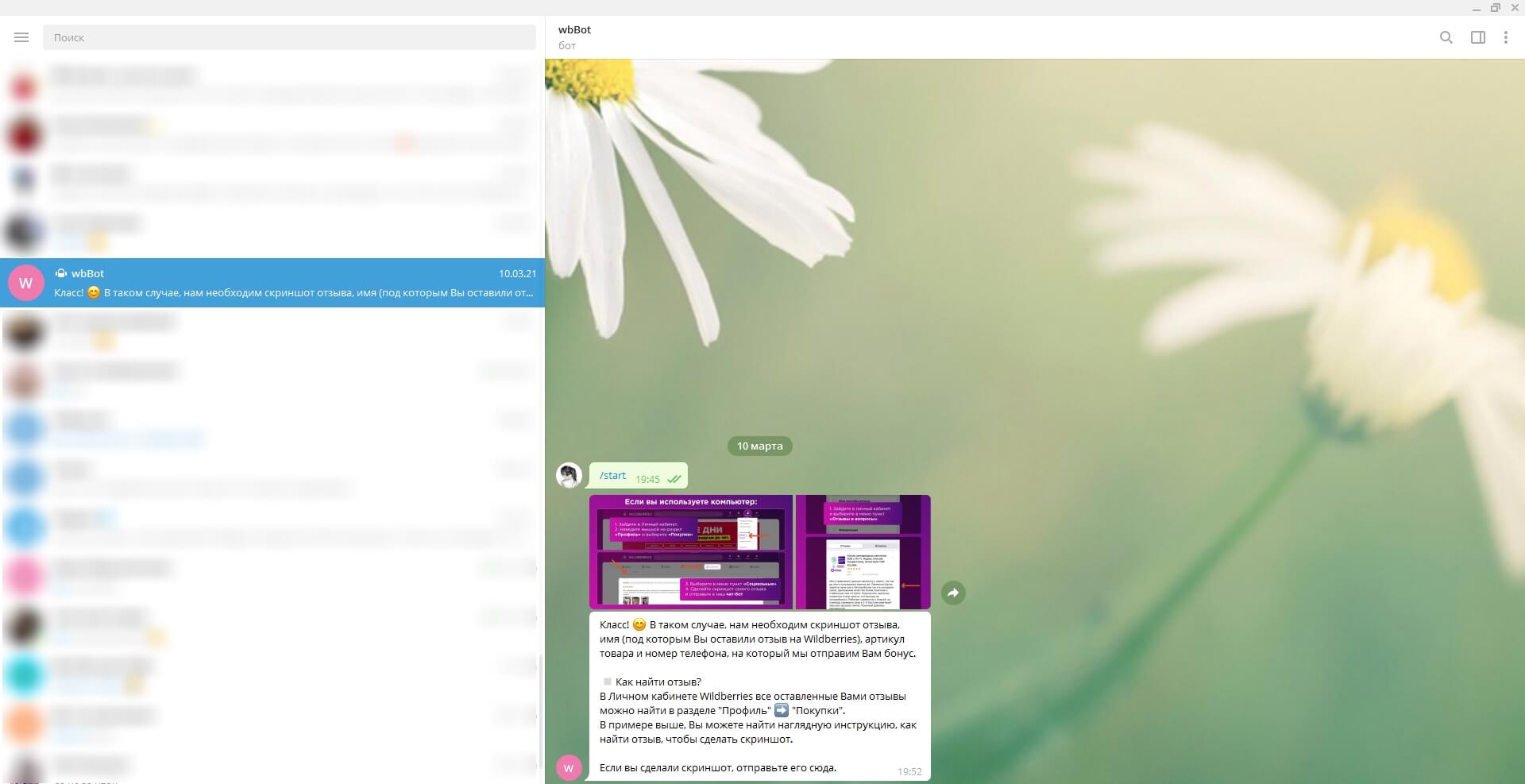 Если пользователь пообщался с ботом, то бот в будущем может отправлять ему сообщения. Для этого пользователь должен дать согласие на получение рассылки. Так, через некоторое время вы можете присылать ему сообщения с рассказом о продукте, отзывами, инструкциями, успешными примерами других клиентов, а также предложить скидку на первую покупку или сертификат на определенные позиции.