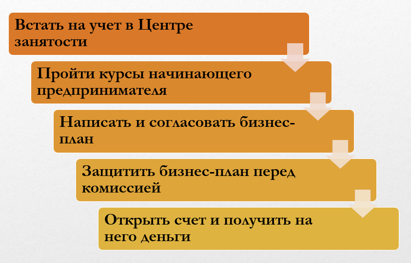 Такие субсидии тоже выдаются не всем подряд – участник должен иметь статус безработного, а также подготовить бизнес-план перспективного и коммерчески успешного проекта. Вот подробный алгоритм, как самозанятому получить выплату от государства через Центр занятости: