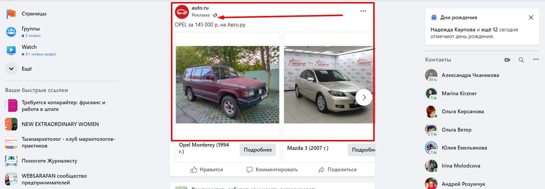 А тем, кто собирается купить или поменять машину, показывают вот такую таргетированную рекламу.