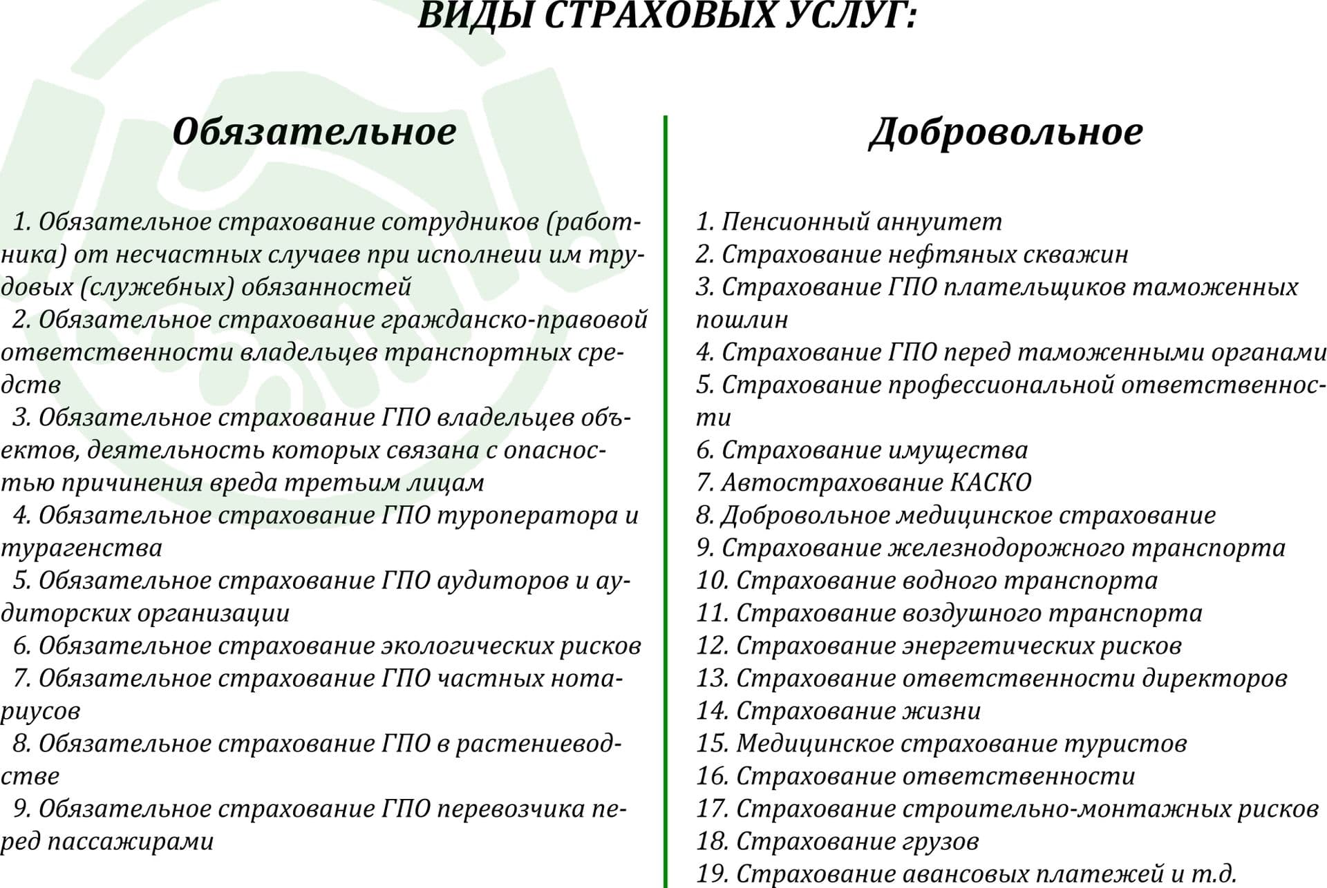 - В некоторых случаях (медицинские, пенсионные программы) обязательное страхование не исключает добровольное – напротив, данные направления дополняют друг друга.