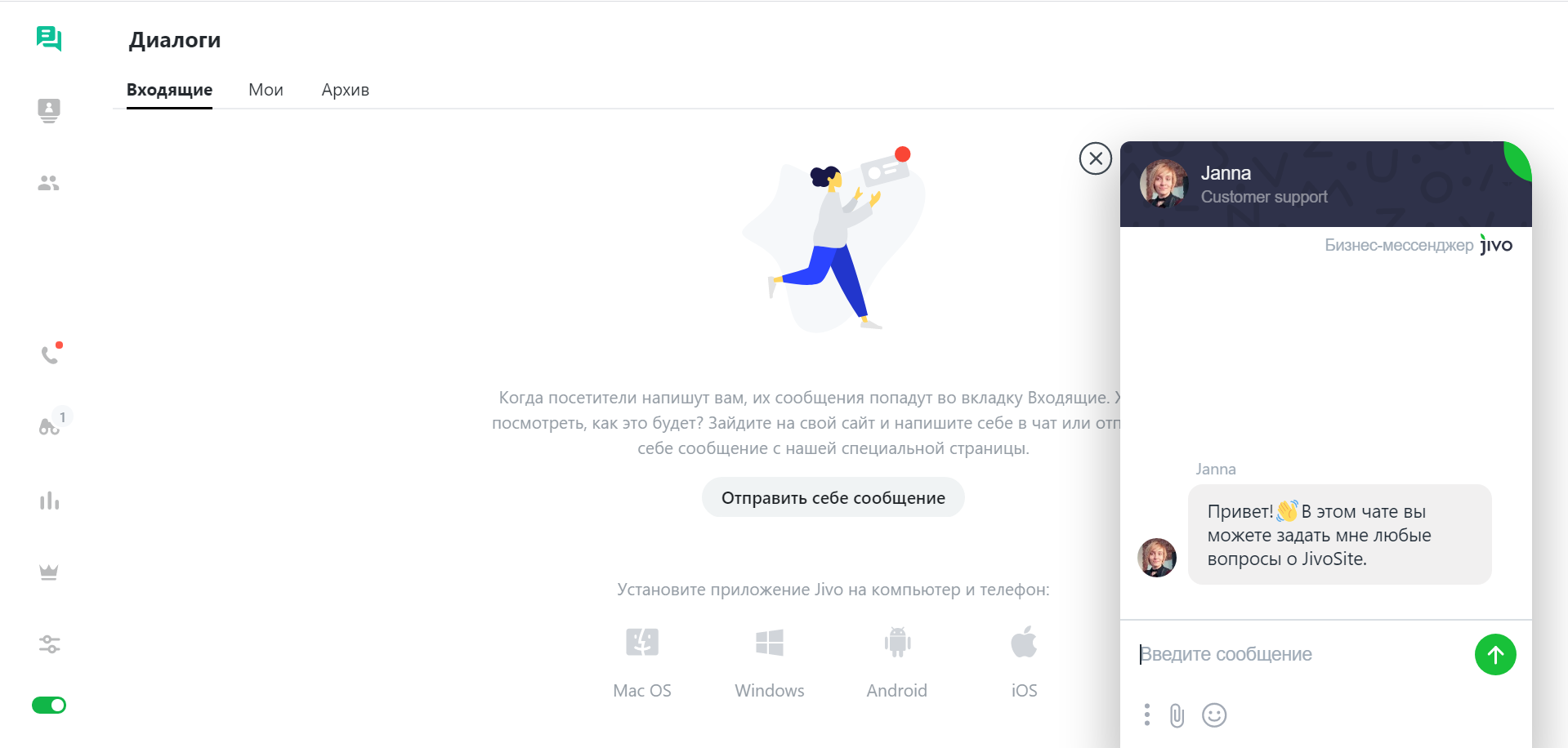 - настольное, мобильное и веб-приложения для управления онлайн-консультантом;