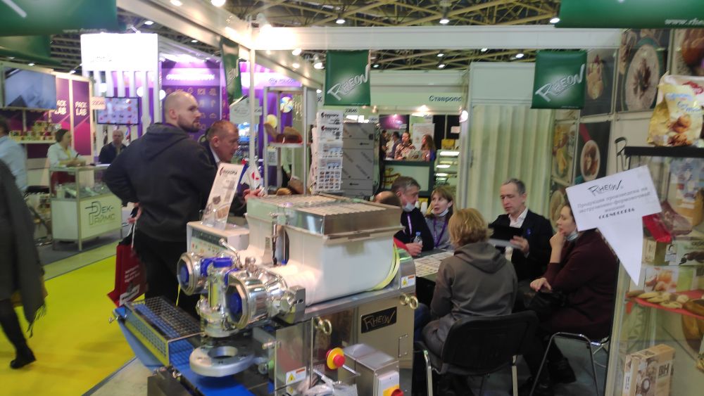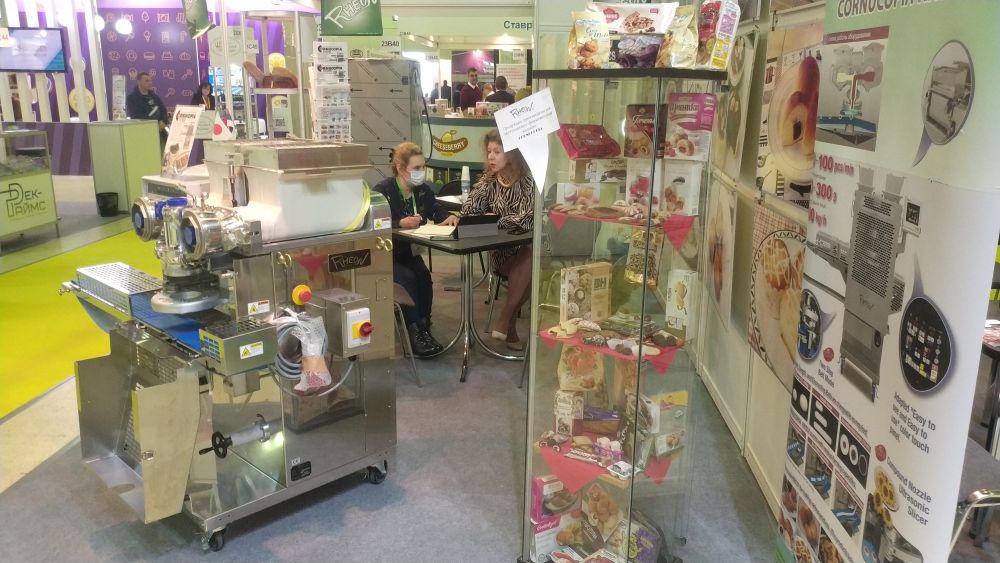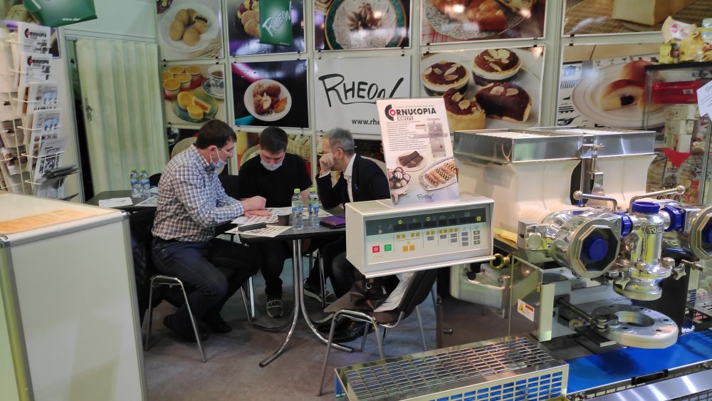На нашем стенде гости ознакомились сразу с двумя экструзионно-формовочными машинами легендарной линейки CORNUCOPIA, RHEON